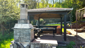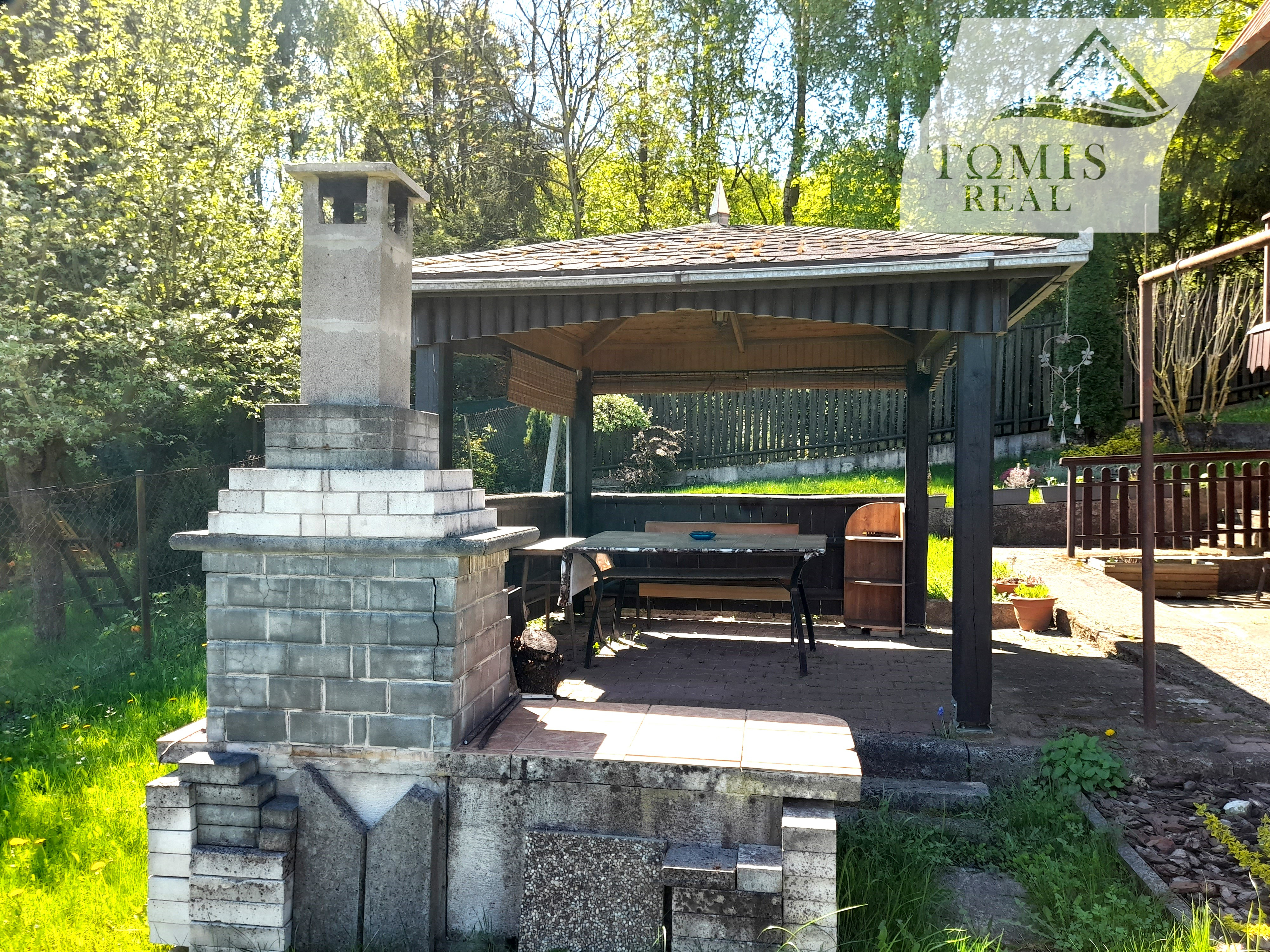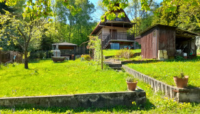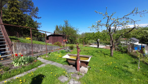 Na pozemku sú ovocné stromy, kríky, kvety a taktiež šopa so suchým WC.