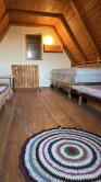 Dispozične chata pozostáva z troch poschodí, kde na prízemí sa nachádza kuchynka, technická miestnosť. Prvé podlažie tvorí obývacia časť a na vrchnom poschodí sa nachádza spálňa s balkónom odkiaľ je nádherný výhľad na okolitú prírodu.