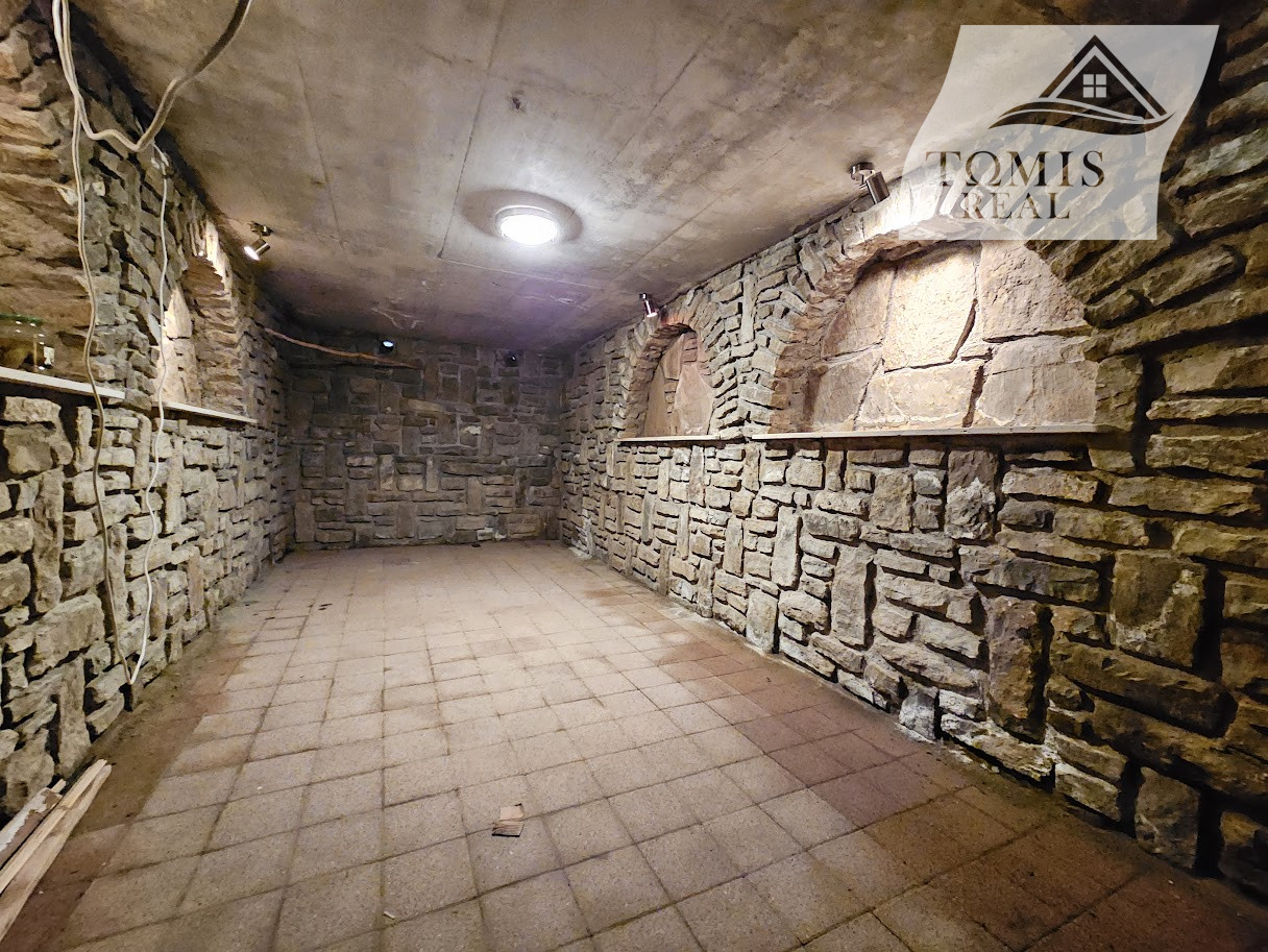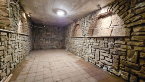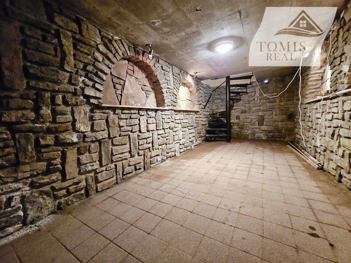 prízemie - priestranná obývacia hala s krbom a terasou, jedáleň, kuchyňa, kúpeľňa s wc, technická miestnosť, sklad, vínna pivnica.