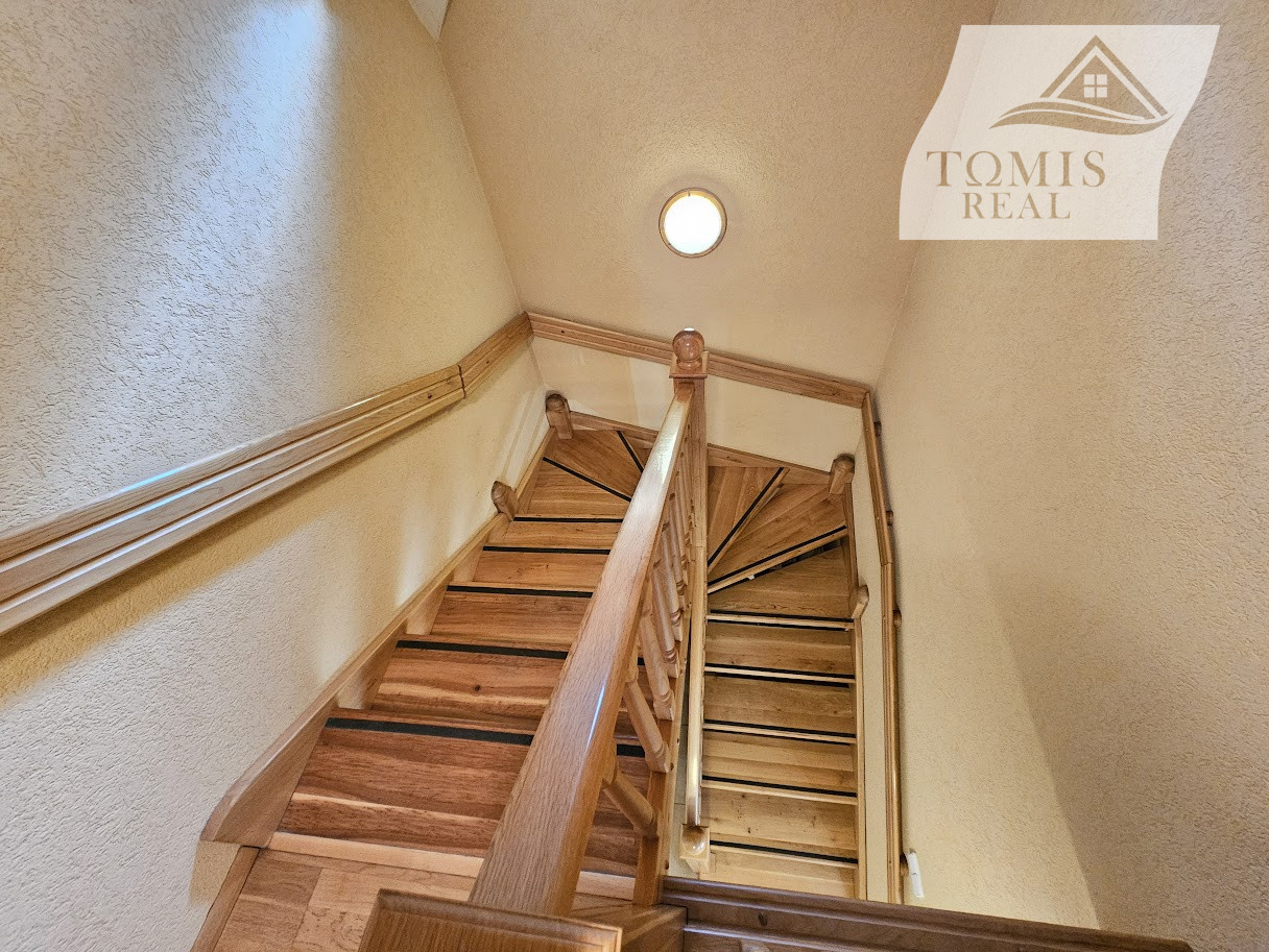 Schodisko, nábytok, skrine, zárubne, dvere, kuchynská linka, je z masívu - DUB.