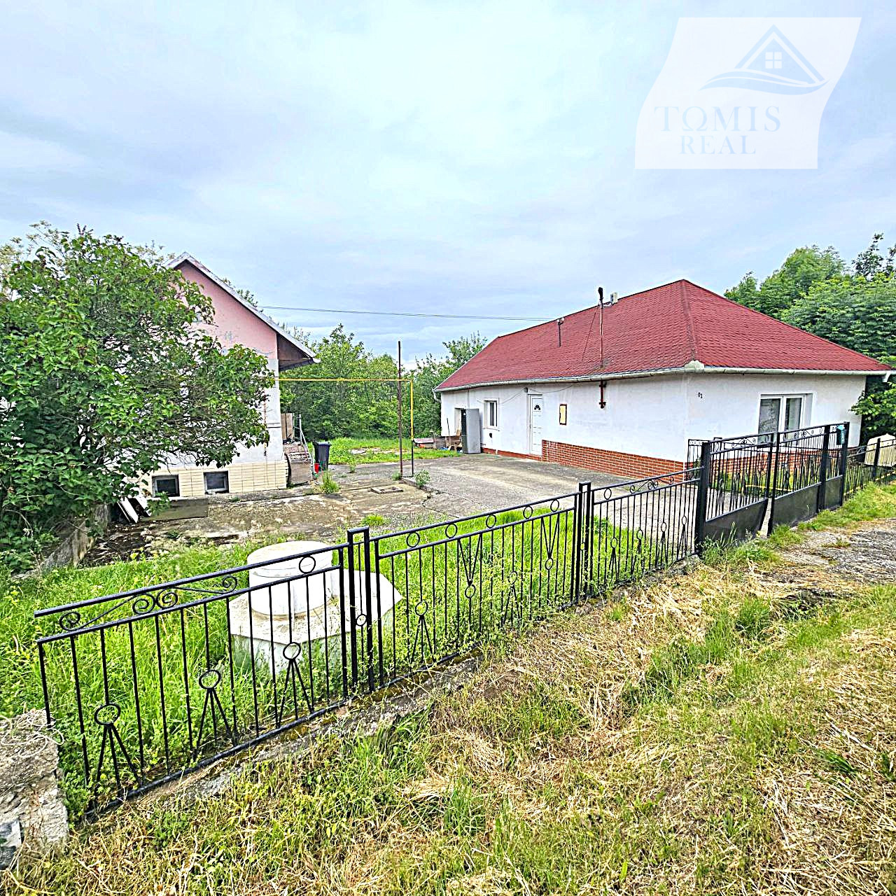 Pozemok je oplotený, v prednej časti rovinatý, záhrada svahovitá. Predná časť pozemku ( dvor ) betón, parkovacie miesto pre 3 auta.