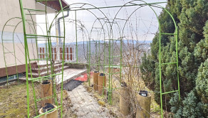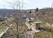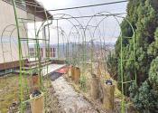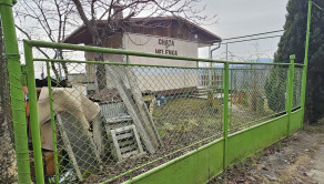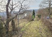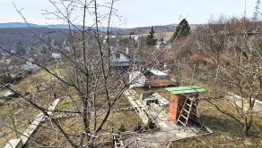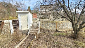 Oplotený pozemok je uzatvorený vstupnou bránou a bránkou oplotenia, terén upravený kaskádami a schodmi uprostred záhrady. Na pozemku sa nachádzajú ovocné stromy, ríbezle, egreše, tuje a suché WC.