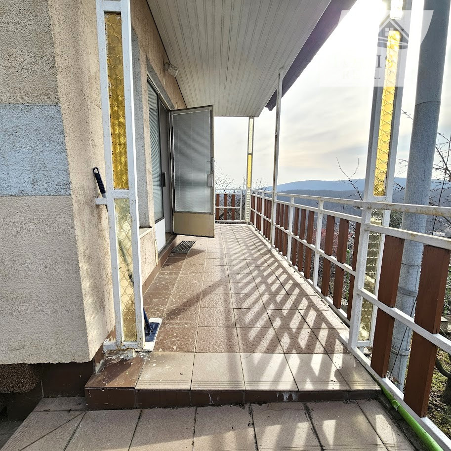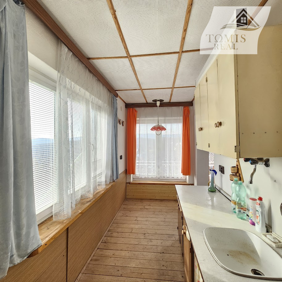 Poschodie: obývacia hala, kuchyňa, balkón s krásným výhľadom na okolitú prírodu a Košice.