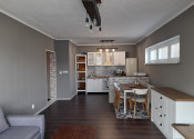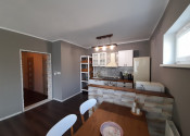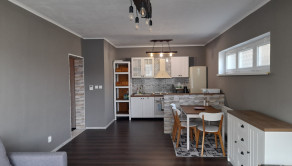 - nepriechodná spálňa s manželskou posteľou a vstavanou skriňou - priestranná obývacia izba prepojená s kuchynským a jedálenským kútom