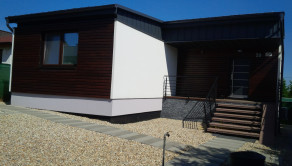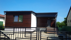 Čo sa týka stavby, jedná sa o kvalitnú drevostavbu vo vysokom štandarde. Je postavená na betónovej platni odizolovaná hydroizoláciou. Obvodové steny vrátane vnútornej izolácie 14cm sú vrstvené -nosný skelet SIP systém s dodatočným vonkajším zateplením 8cm fasádnym polystyrénom. Vnútorná strana sadrokartón. Vonkajšie opláštenie drevo profil rhombus, sibírsky smrekovec 3x lazurovaný. Strecha je väzníková, drevená konštrukcia s 30cm izoláciou. Okná sú plastové 6 komorové s izolačným 3 sklom.