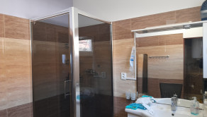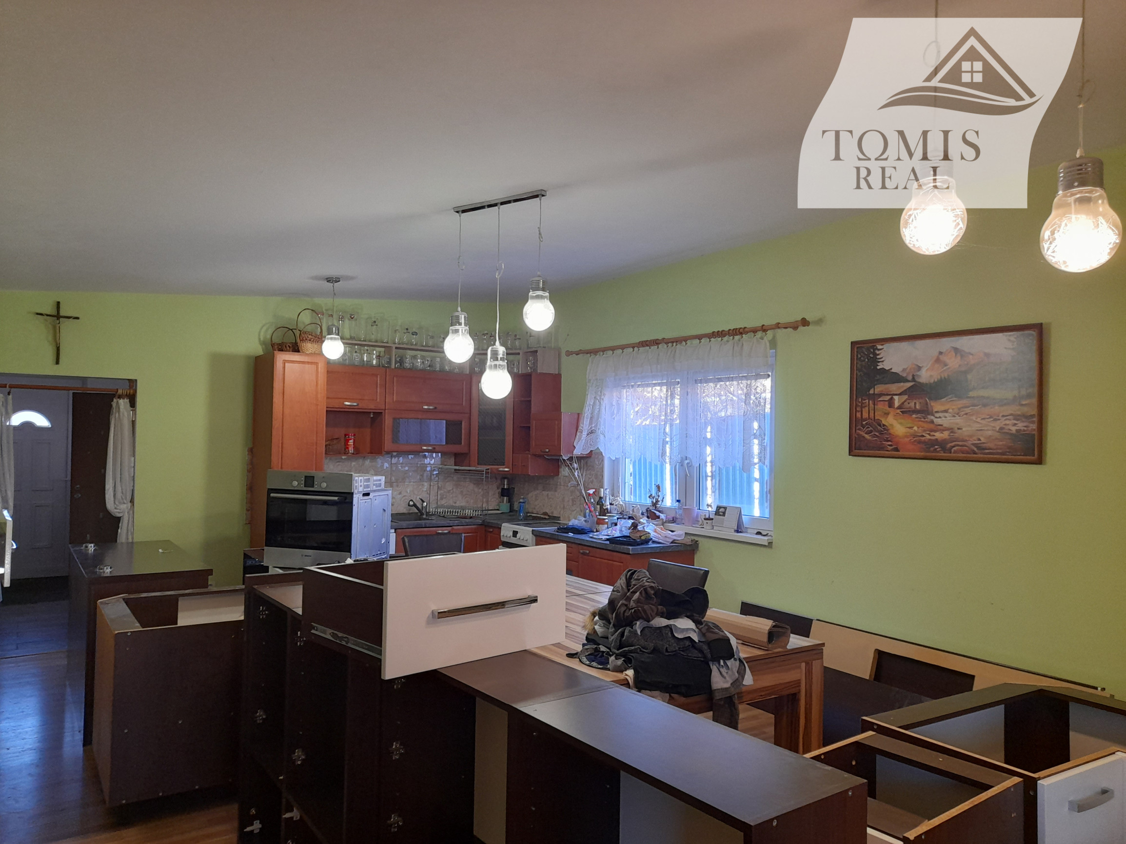 - Dom: dispozične pozostáva z troch nepriechodných izieb, veľkej obývačky spojenej s kuchyňou, odkiaľ je výstup na drevený altánok. Samozrejme, súčasťou domu je vstupná chodba, veľkorysá kúpeľňa so sprchovacím kútom a samostatné WC. V celom dome je elektrické podlahové kúrenie.