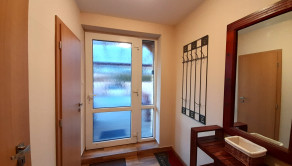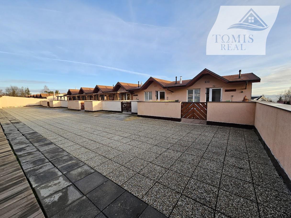 Obývacia hala s kuchyňou a jedálňou, dve spálne ( v 1 spálni je šatník ), kúpeľňa, WC, technická miestnosť, vstupná chodba a veľká čiastočne prekrytá terasa o rozlohe 40 m2. Vykurovanie - plynový kotol, radiátory.